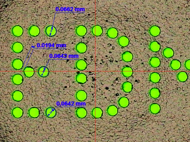 Continuous processing of 44 holes * ∅0.07mm, with a minimum spacing of 0.02mm, no electric spark melting traces or cracks, depth controllable within 0.22mm, ∅2 bottom Ra0.06; suitable for the production of ultra-precision or miniature precision mold components.